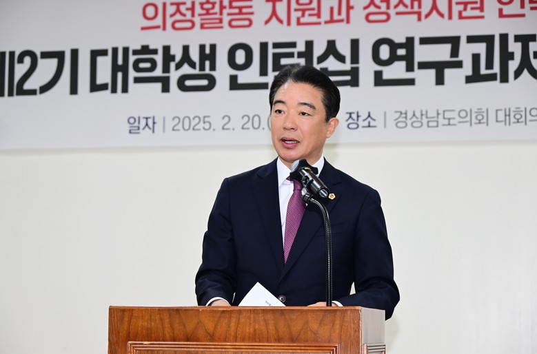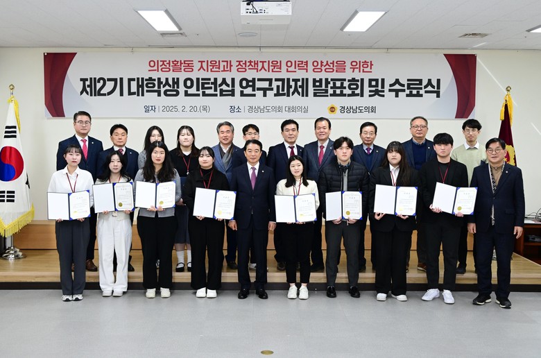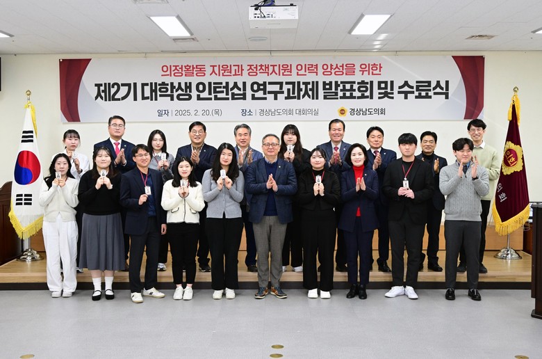 [경남 세계타임즈=최성룡 기자] 경상남도의회(의장 최학범) ‘제2기 대학생 인턴십 사업’이 최종일인 2월 20일 대학생 인턴의 연구과제 발표회와 수료식을 마지막으로 6주간의 여정을 성공적으로 마무리했다.