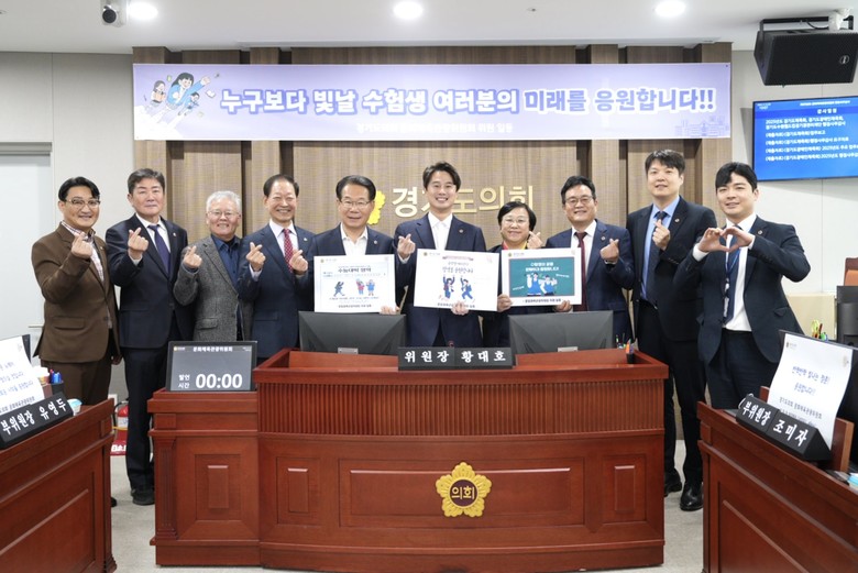 유영두(국민의힘, 광주1) 부위원장은 “지금까지 쌓아 온 노력이 반드시 결실을 맺으실 것입니다.”, 조미자(더불어민주당, 남양주3) 부위원장은 “반짝반짝 빛나는 청춘, 응원합니다!” 등 14명의 의원이 남긴 메시지를 통해 전국 약 55만 명, 이 중 경기도 16만 3,600여명의 수험생에게 용기와 희망을 전했다.