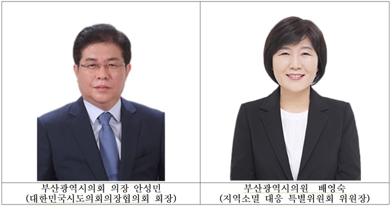 대한민국시도의회의장협의회 안성민(부산광역시의회 의장) 회장은 “지역소멸은 어느 한 지역의 문제가 아니라 대한민국 모두의 위기로서, 지역 균형발전과 진정한 지방시대 실현을 위해 다각적인 해결방안을 모색이 필요하고, 다양한 현장 목소리를 청취하고 정책대안 제시 등에 ‘(대한민국시도의회의장협의회) 지역소멸 대응 특별위원회’가 앞장설 것이다.”라고 전했다.