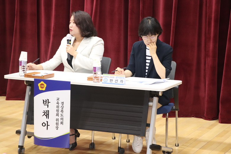 [경북 세계타임즈=한윤석 기자] 경상북도의회 교육위원회 박채아 위원장(국민의힘, 경산3)은 8월 23일(금) 경상북도경산교육지원청에서 80여 명의 경산 지역 학부모, 관계공무원이 참여하는 “학생 아침 간편식 지원을 위한 학부모 간담회”를 가졌다.