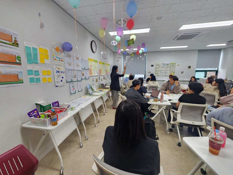 이어 2부에서는 ▲질문이 살아있는 교실 ▲사회정서학습 ▲인공지능과 에듀테크 활용 ▲생태전환교육 ▲논술형 평가 단원 설계 등 참석자들을 주제에 따라 12개 반으로 나누고, 교실에서 얻은 경험과 고민을 토대로 다양한 수업 이야기를 공유했다.