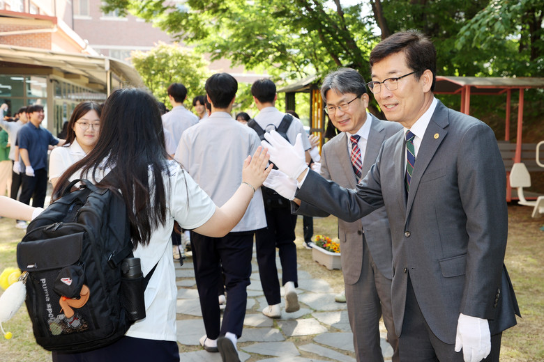 이주형(3학년) 학생회장은 “아침 등굣길에 교육감님과 선생님들의 응원을 들으니 친구들과 활기찬 하루를 보낼 수 있을 것 같다. 스승의 날을 맞이하여 항상 우리들의 곁에서 ‘참 되거라 바르거라’를 가르쳐주시는 선생님들께 ‘스승, 존경의 대상’으로 마음을 전하고 싶다.”고 소감을 전했다.