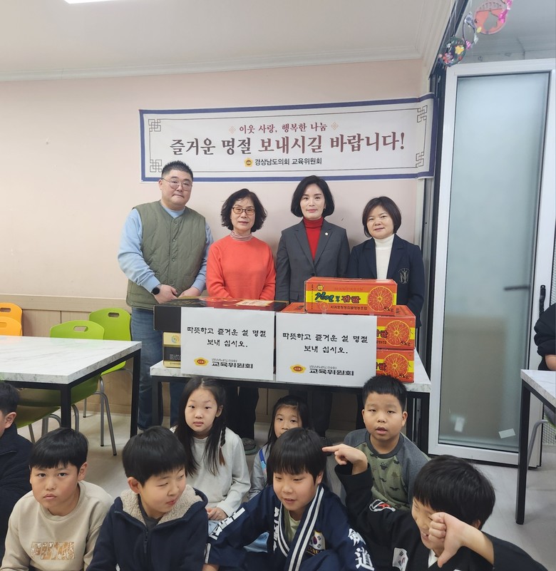 [경남 세계타임즈=최성룡 기자] 경남도의회 교육위원회(위원장 이찬호)는 1월 22일, 민족 최대의 명절 설을 맞이하여 창원에 소재한 팔용지역아동센터를 방문했다. 이날 시설을 방문한 박진현(국민의힘, 비례) 의원은 시설에 위문품을 전달하고 관계자들을 격려했다.