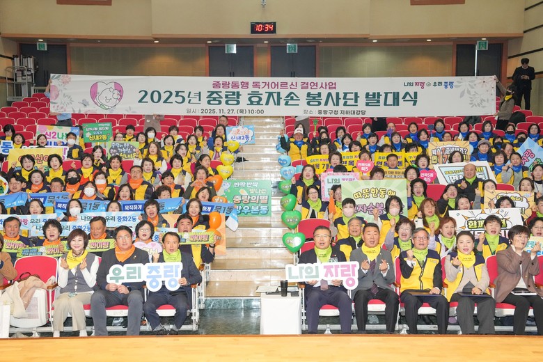 [중랑구 세계타임즈=이장성 기자] 중랑구(구청장 류경기)는 지난 27일 목요일, 중랑구청 지하대강당에서 ‘중랑 효자손봉사단’ 발대식을 열고, 지역 독거어르신을 위한 든든한 안전망 강화에 나섰다.