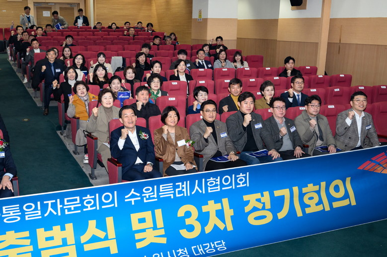 [수원시 세계타임즈=송민수 기자] 민주평화통일자문회의(이하 민주평통) 수원시협의회는 8일 수원시청 대강당에서 이재준 수원특레시장과 도.시의원 등 자문위원 200여명이 참석한 가운데 제22기 민주평통 수원시협의회 출범식 및 2025년 3차 정기회의를 진행했다.