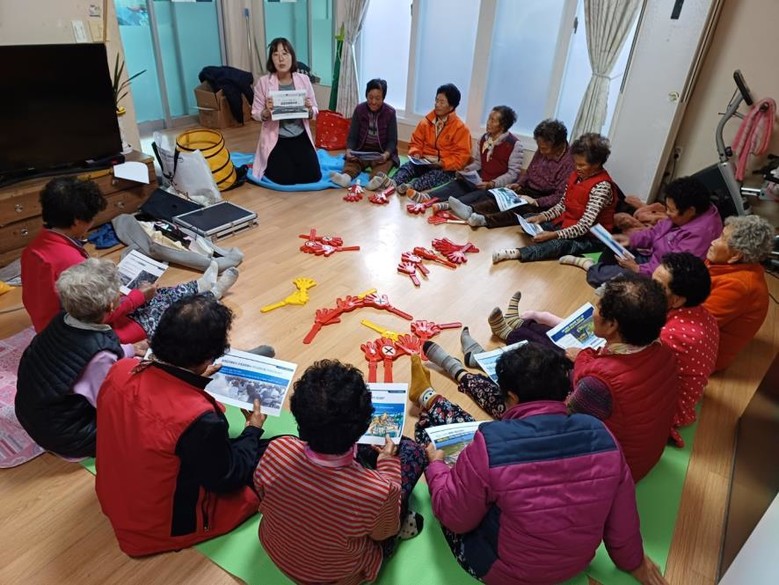 | ▲ 지역 어르신들이 순천시 망룡보건진료소에서 치매 예방 교육 등 다양한 건강증진 프로그램에 참여하고 있다 |