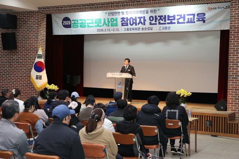[고흥군 세계타임즈=우덕현 기자] 고흥군(군수 공영민)은 공공분야 직접일자리사업 참여자의 산업재해 예방과 안전한 근로환경 조성을 위해 지난 2월 12일부터 13일까지 고흥문화회관 송순섭실에서 안전보건교육을 실시했다고 밝혔다.