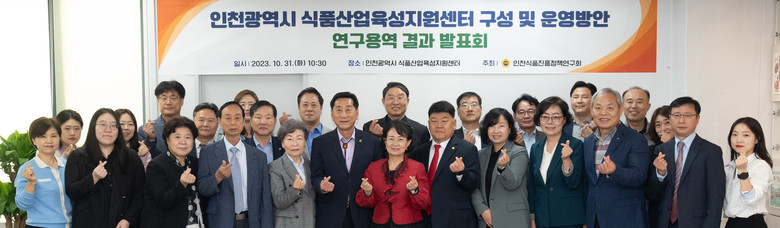 연구단체 대표인 박판순 의원은 “이번 발표회를 거쳐 용역 결과보고서가 발간되면 앞으로 집행부 등과 공유해 정책 자료로 활용될 수 있도록 노력할 것”이라며 “인천시 식품산업육성지원센터 운영 활성화를 통해 식품산업 지원체계가 구축되면 시민의 건강 증진에도 도움이 될 것”이라고 말했다.