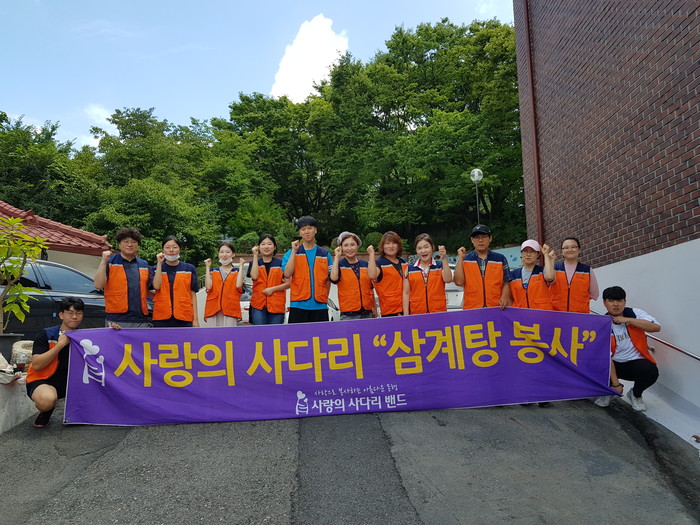 [대전=세계타임즈 이장성 기자] 대전시 소외계층을 위해서 다양한 봉사활동을 실천하고 있는 대전시 SNS 8천명 봉사단체 사단법인 사랑의 사다리 밴드(리더 이정제)는 14일, 동구 소제동에 위치한 자혜원(원장 양승연)에서 삼계탕 봉사로 우리 사회의 따뜻한 사랑을 전달하였다.