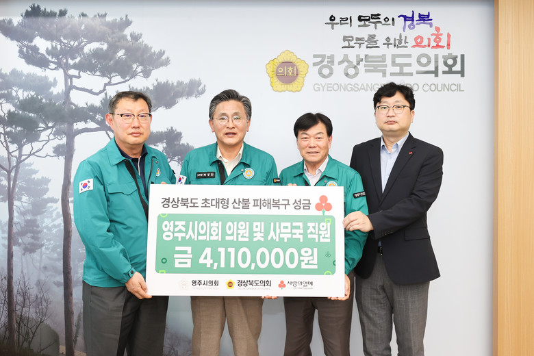 이날 전달된 성금은 영주시의회 의원과 직원들이 자발적으로 모금한 것으로 산불피해 복구와 이재민 지원을 위해 쓰일 예정이다.