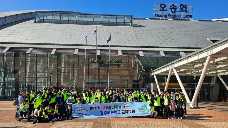 [충북 세계타임즈=이현진 기자] 청주혜원학교(교장 남경희)는 5일(목), 12일(목) 두 번에 걸쳐 중.고.전공과 전교생을 대상으로 KTX를 타고 오송역에서 서울로 기차여행을 하는 교육여행을 진행하였다.