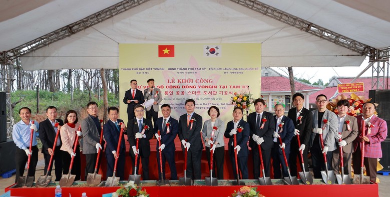 | ▲ 이상일 용인특례시장이 지난해 2월 26일(현지시각) 베트남 국제연꽃마을에서 개최한 용인 스마트 디지털도서관 착공식에 참석했다. |