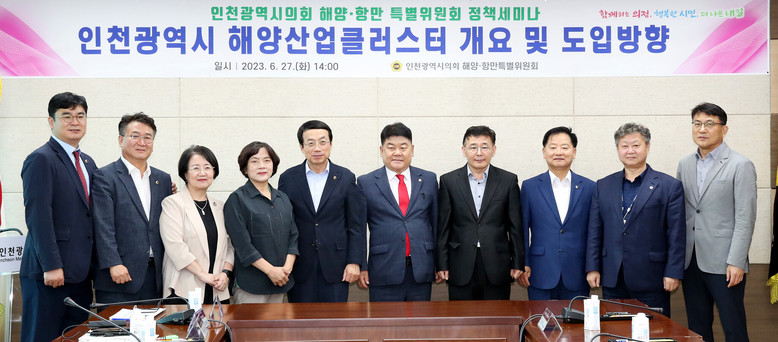 인천광역시의회 해양산업클러스터 및 항만 재개발 특별위원회(위원장 박창호)는 최근 의원 총회의실에서 허식 의장, 박창호 위원장 및 해양·항만특위 위원(제1부위원장 이순학, 제2부위원장 신영희, 김종배·박판순·조현영 위원), 인천시 윤현모 해양항공국장, 인천지방해양수산청 고경만 항만물류과장, 인천항운노조 오광민 홍보부장 등이 참석한 가운데 해양산업클러스터에 관한 정책세미나를 개최했다.