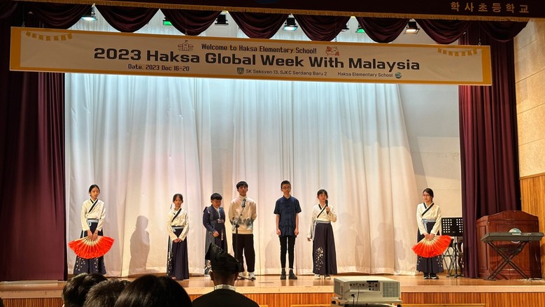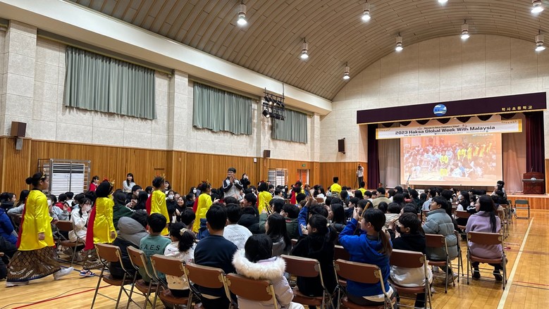 [부산 세계타임즈=이용우 기자] 부산 북구 학사초등학교(교장 박현효)는 지난 18~19일 말레이시아 SK 섹션13, SK SJKC 세르당바루2 학생 30명과 교사 10명이 방문해 학사초 전교생이 함께 ‘2023 Haksa Global Week With Malaysia’를 운영했다고 22일 밝혔다.