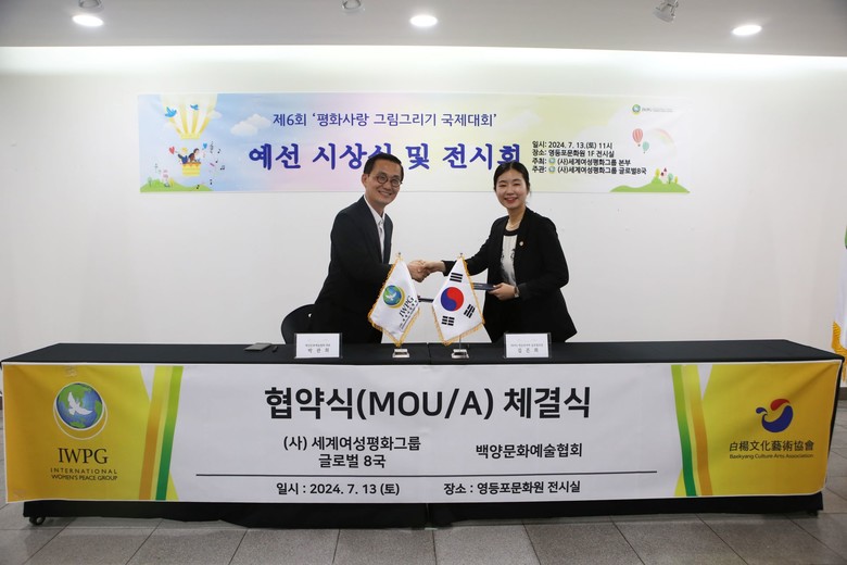 또한 IWPG는 이날 지역사회 발전을 위한 인재 발굴과 평화 정착을 도모하고자 백양문화예술협회와 업무협약(MOU)을 체결했다.