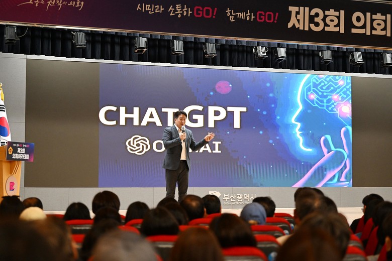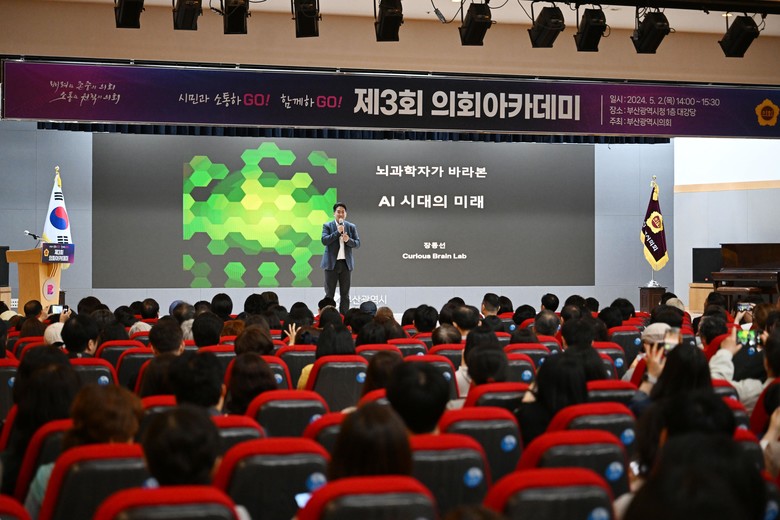 박중묵 부산광역시의회부의장은 인사말을 통해 “오늘 이 강연이 AI시대를 살아가는 시민 여러분의 안목을 넓히는 시간이 되기를 바라고, 앞으로도 부산광역시의회는 시민 여러분께 보다 나은 미래를 보여드릴 수 있도록 최선을 다할 것”이라고 전했다.