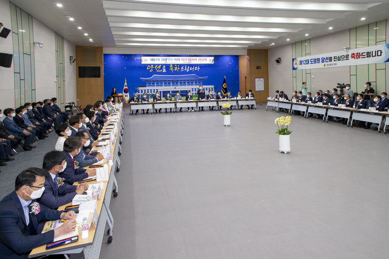 당선인 간담회는 오는 7월 1일 임기가 시작되는 제12대 도의원 당선인들간의 상견례와 임기 시작에 앞서 의원활동에 필요한 정보를 제공하기 위해 마련된 자리이다.