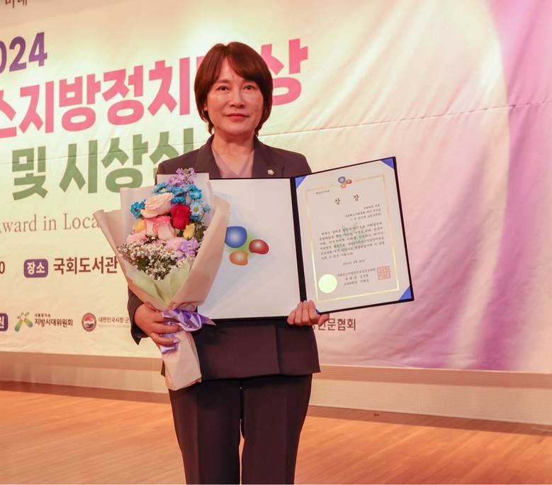 [남동구 세계타임즈=심하린 기자] 남동구의회 이정순 의원(더불어민주당/간석2‧3동, 구월2동)은 24일 서울 국회도서관 강당에서 열린 ‘2024 거버넌스정치대상’에서 ‘갈등해소사회통합 분야’ 우수상을 수상했다.