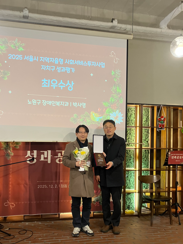 | ▲ 2025 서울시 지역자율형 사회서비스투자사업 자치구 성과평가 최우수상 수상 |