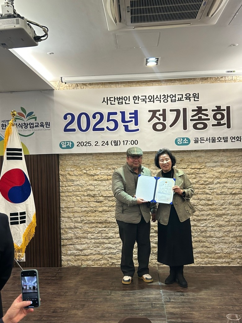 ● 2024년 외식산업 발전 공로 감사장 수상자▶ 김용호 이사, 이규한 이사 ● 2025년 대한민국 외식산업 발전 공로상▶ 주정자 부이사장, 김희순 위원장외식산업의 발전을 위해 오랜 기간 헌신해 주신 공로에 깊은 감사를 드리며, 앞으로도 더 큰 비전과 사명감으로 대한민국 외식업계를 빛내 주시리라 믿는다.