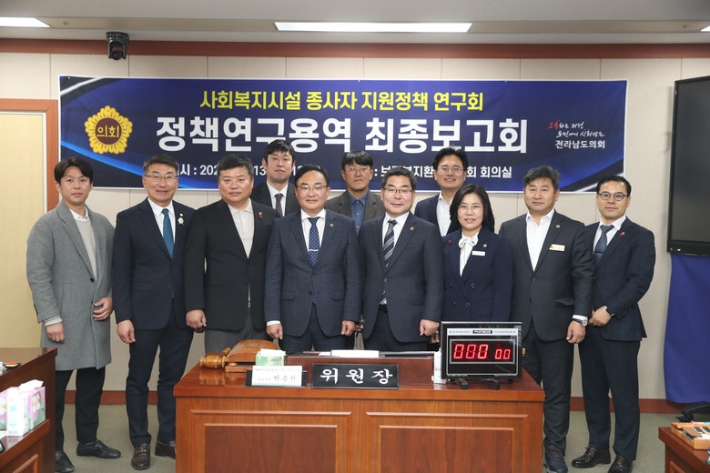 이번 보고회는 박종원 대표위원(더불어민주당, 담양1)을 비롯해 연구단체 위원, 전남도 사회복지과, 정책연구용역 수행기관인 세한대학교 교수진이 참석한 가운데 진행됐다.