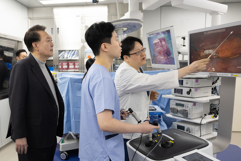 행사에는 송정한 분당서울대병원장, 김재용 교육인재개발실장, 최준영 로봇수술센터장, 전공의 등이 참석한 가운데 시뮬레이션센터 소개, 복강경 시뮬레이터 실습 시연 및 윤 대통령의 실습 참여, 환담 순으로 진행됐다.