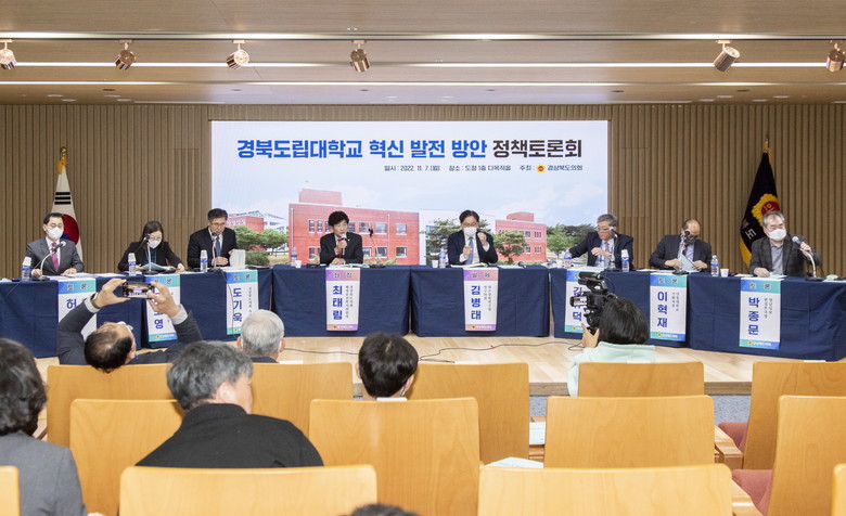 [경북 세계타임즈=한성국 기자] 경상북도의회(의장 배한철)는 7일 도청 안민관 다목적홀에서 150여명의 교직원 및 관계자와 함께 ‘경북도립대학교 혁신 발전 방안 정책토론회’를 개최했다.