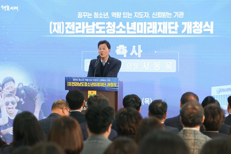 [전남 세계타임즈=우덕현 기자] 전남도의회 서동욱 의장은 11월 23일 목포시 용해동에 자리한 전라남도 청소년미래재단 개청식에 참석했다.