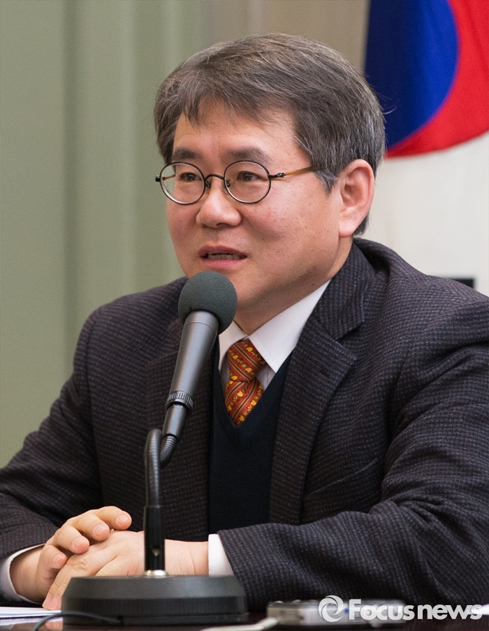 (서울=포커스뉴스) 29일 오후 서울 중구 프레스센터에서 '3.1 운동의 정신을 이어 민족의 평화와 화해, 신뢰회복을 위한 종교인 기자회견'에 참석한 천도교 임형진 교수가 인사말을 하고 있다.