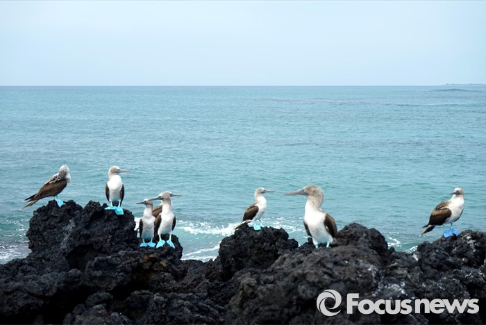 (갈라파고스=포커스뉴스) 바보새로 불리는 부비새는갈라파고스에만 서식한다. 특히 발이 파란색이고걷는 모양이 우스광스럽다.<사진제공=전수경>