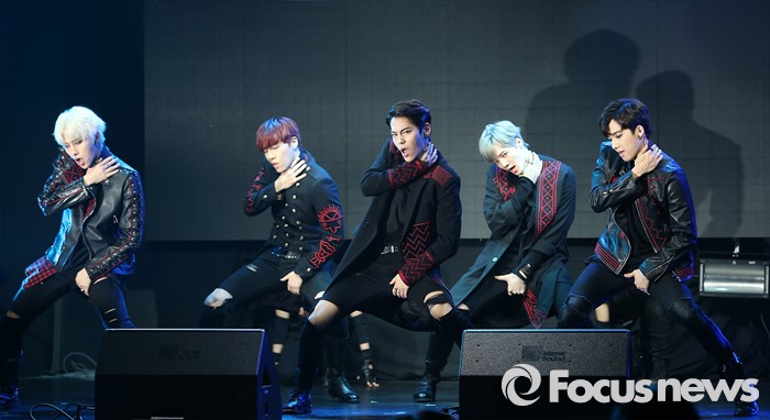 (서울=포커스뉴스) 30일 오후 서울 마포구 예스24 무브홀에서 열린 아이돌그룹 소년공화국의 세번째 미니앨범 [BR: evolution] 발표 쇼케이스에 참석한 멤버들이 'Get Down'무대를 선보이고 있다.