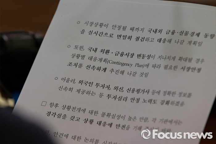 (서울=포커스뉴스) 영국의 브렉시트 투표가 끝난 24일 오전 서울 중구 은행회관에서 열린 거시경제 금융회의에 참석한 최상목 기획재정부 제1차관이 모두발언 하고 있다.