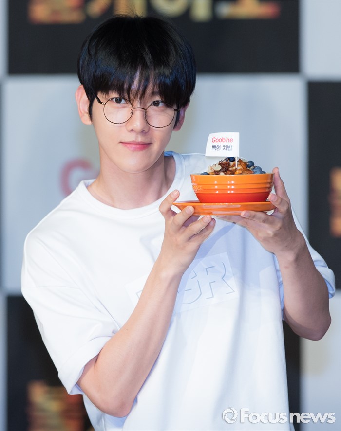 (서울=포커스뉴스) 29일 오후 서울 강남구 일지아트홀에서 열린 '굽네 볼케이노와 함께하는 엑소(EXO) 치밥 쿠킹 팬사인회'에서 백현이 포즈를 취하고 있다.