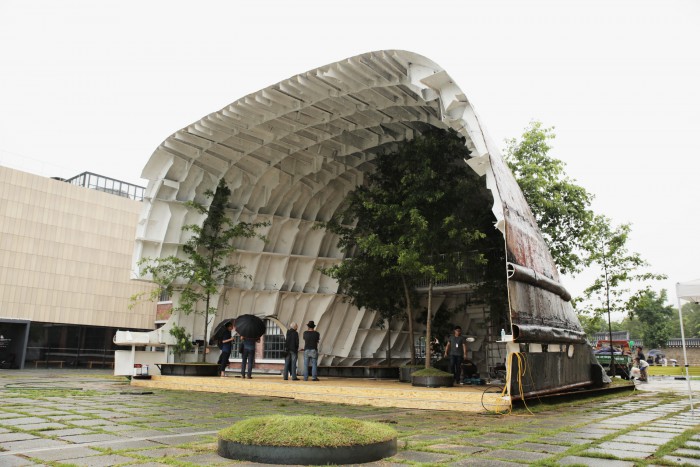 신 건축가는 이날 작품설명회에서 "이번 작품을 통해 관람객들에게 선박 해체 과정 중 생기는 오염 문제를 알리며 환경의 중요성을 관람객에게 전달하고 싶다"고 밝히며 작품 취지를 설명했다.