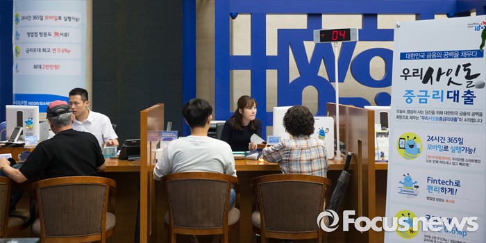 (서울=포커스뉴스) 5일 오후 서울 중구 우리은행 본점에서 은행 고객들이 사잇돌 중금리 대출 상담을 받고 있다.