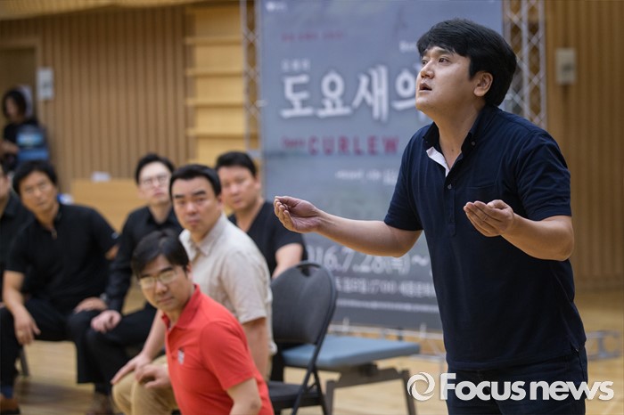 (서울=포커스뉴스) 7일 오후 서울 종로구 세종문화회관에서 열린 오페라 '도요새의 강' 제작발표회에 참석한 출연진이 장면을 시연하고 있다.