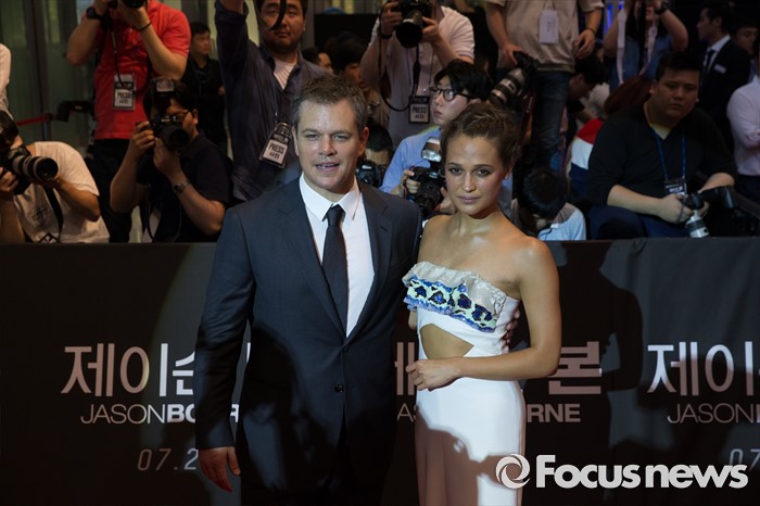 (서울=포커스뉴스) '본시리즈'의 최신작 '제이슨 본'의 홍보를 위해 한국을 찾은 할리우드 스타 맷 데이먼과 알리시아 비칸데르가 명성에 걸맞는 '특급' 팬서비스를 선보였다.
