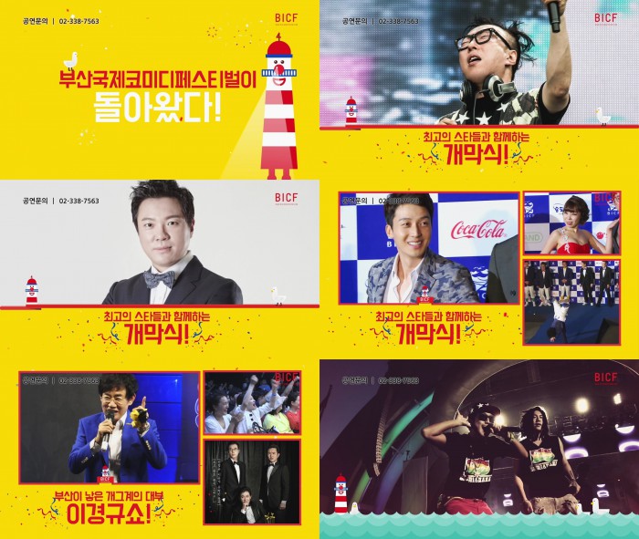 BICF는 26일 TV 스팟 영상을 공개하며 축제를 기다리는 팬들의 기대감을 높였다. 송은이와 김숙 콤비의 익살스러운 해설로 흥을 돋운 영상에는 '이경규쇼', 이성미·김효진·김지선의 '사이다 토크쇼', '옹알스' 등의 공연 라인업과 함께 축제의 꽃이라고 할 수 있는 개막식 축하공연 라인업이 베일을 벗었다.