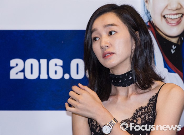 (서울=포커스뉴스) 26일 오후 서울 강남구 메가박스 코엑스점에서 열린 영화 '국가대표2' 언론시사회에 참석한 배우 수애가 취재진에게 질문을 받고 있다.