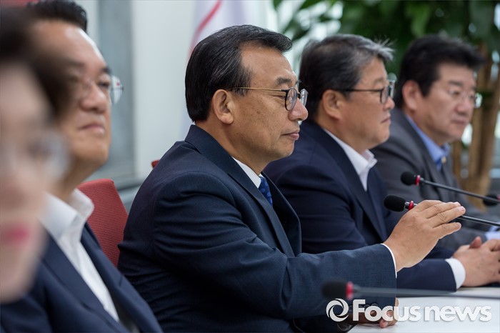 (서울=포커스뉴스) 이정현 새누리당 대표가 11일 오전 서울 여의도 국회에서 열린 최고위원회의에 참석 하고 있다. 이날 회의에서 대표와 원내대표를 비롯한 최고위원들의 모두발언 공개 없이 잠깐의 촬영시간만 주어진 뒤 비공개로 전환 했다.