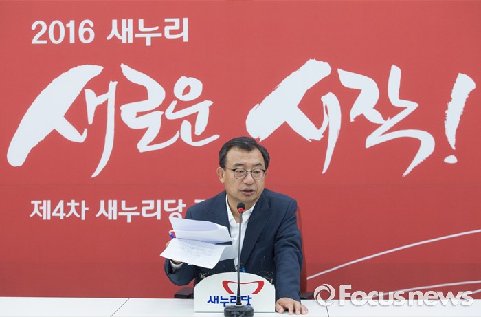 (서울=포커스뉴스) 이정현 새누리당 대표가 11일 오후 서울 여의도 국회에서 박근혜 대통령과의 오찬 결과 브리핑을 하고 있다.