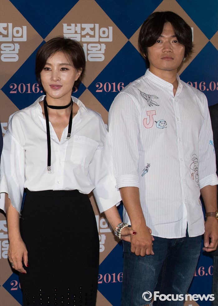 (서울=포커스뉴스) 11일 오후 서울 성동구 CGV 왕십리에서 열린 영화 '범죄의 여왕' 언론시사회에 참석한 배우 박지영(왼쪽)과 조복래가 포즈를 취하고 있다.